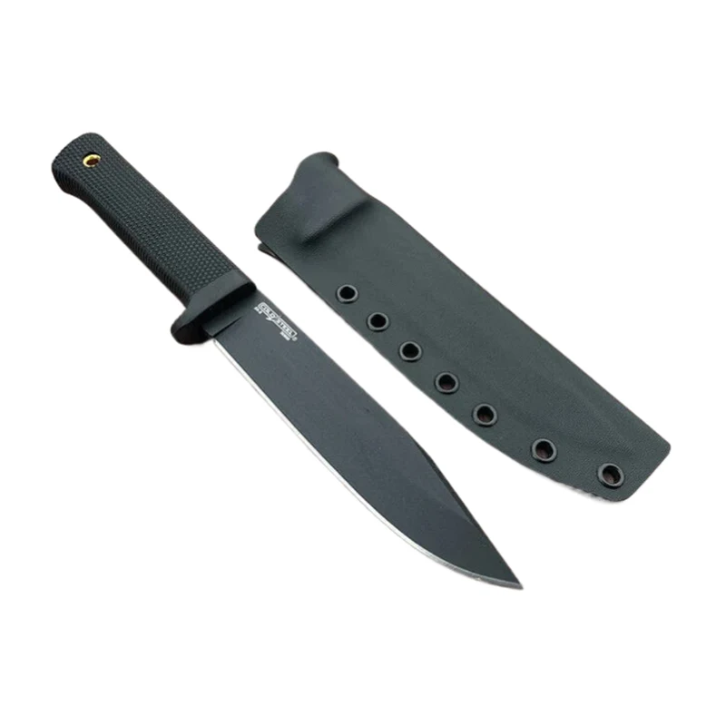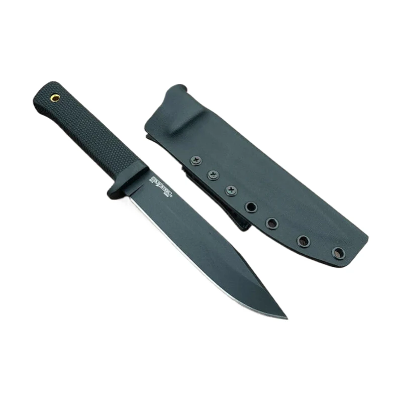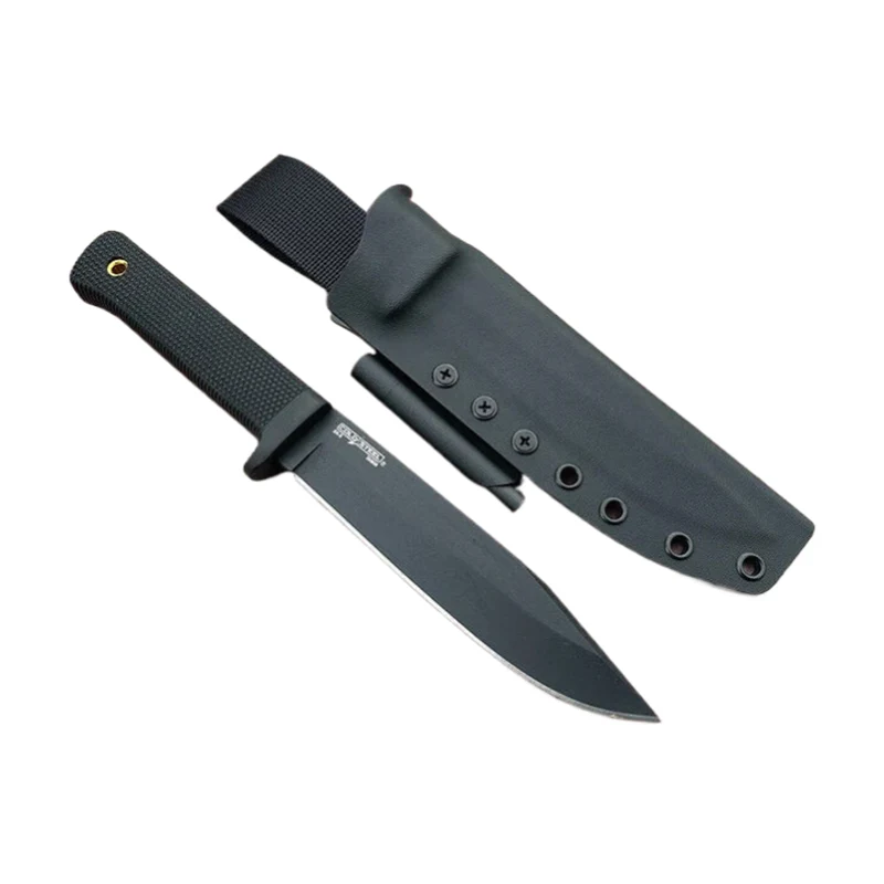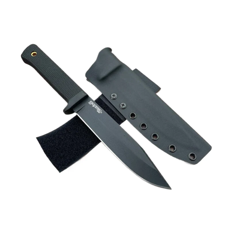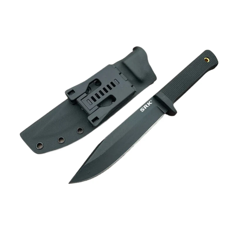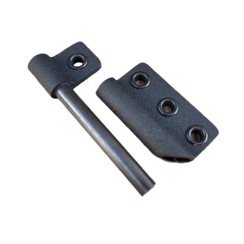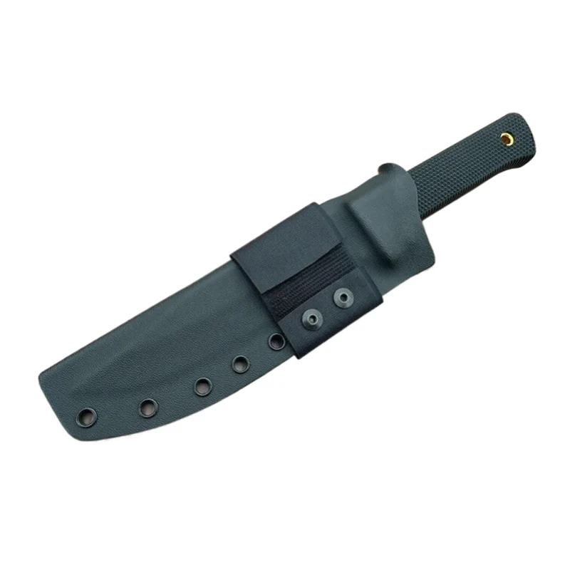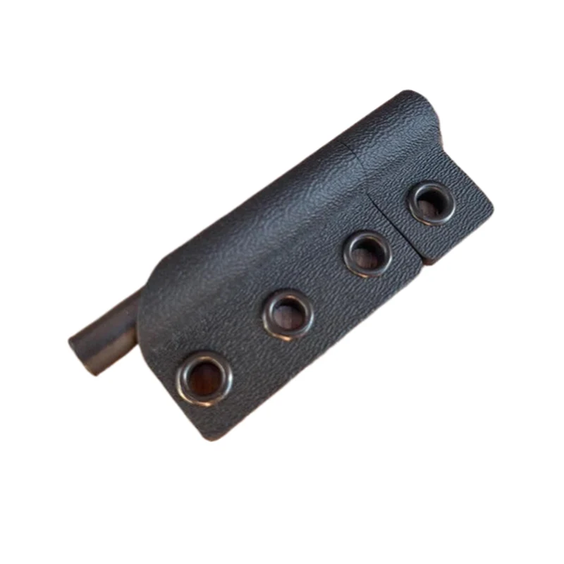 Pochwa noża do paska dostępna jest w kształcie taco (oczka po jednej stronie) i naleśnika (oczka po obu stronach). Aby przymocować Cold Steel do paska w sposób klasyczny, poziomo lub pionowo, moi klienci zazwyczaj wybierają Multi-Lok. Jeśli chcesz nosić nóż nieco niżej, polecam nylonowy pasek z uchwytem Kydex. Rzep nadaje się również do noszenia noża na pasku. Rzep to także praktyczne rozwiązanie umożliwiające przypięcie noża do paska plecaka. Oprócz pochwy z Kydexu mogę doczepić uchwyt ze stali ogniowej, opcjonalnie ze stali ogniowej (długość 80mm).
