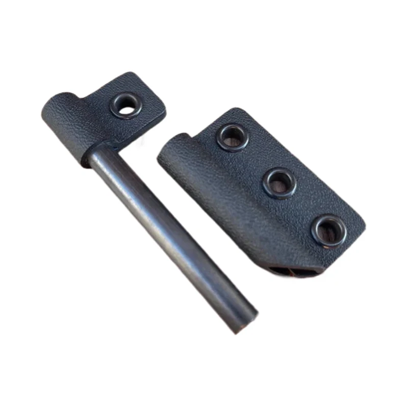 Pochwa noża z twardej skorupy Kydex jest dostępna z oczkami po jednej stronie i oczkami po obu stronach. Aby przymocować nóż do paska w sposób klasyczny, w poziomie lub w pionie, moi klienci najczęściej wybierają Multi-Lok. Jeśli chcesz nosić nóż nieco niżej, polecam nylonowy pasek z uchwytem Kydex. Jeśli chcesz nosić nóż pod paskiem na sztywnym mocowaniu, Multi-Lok z przedłużką może być dla Ciebie. Klipsy lub rzepy idealnie nadają się do noszenia noża przez pasek. Rzep to także praktyczne rozwiązanie umożliwiające przypięcie noża do paska plecaka. Oprócz pochwy z Kydexu mogę doczepić uchwyt ze stali ogniowej, opcjonalnie ze stali ogniowej (długość 80mm).