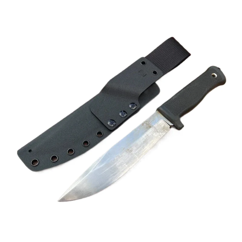 Profesjonalna pochwa z Kydexu typu hardshell do noża kempingowego - najwyższa jakość na rynku amerykańskim i europejskim. Pochwę Kydex do noża wykonuję idealnie dopasowaną, biorąc pod uwagę miękką rękojeść. Pomimo dużej wagi nóż stabilnie leży w pochwie, dzięki czemu można go przenosić także do góry nogami (tzw. tip-up).