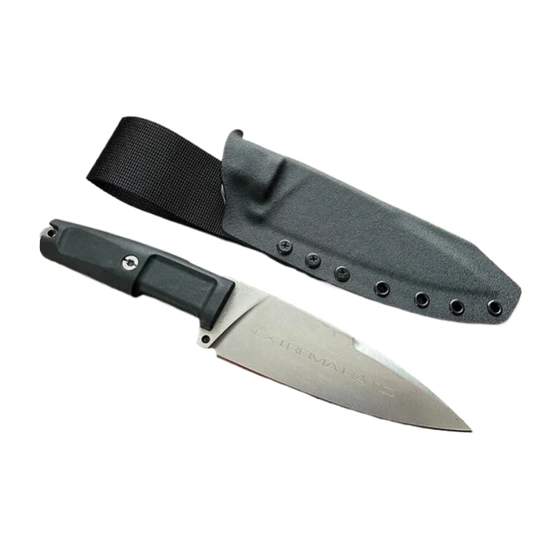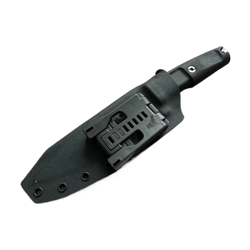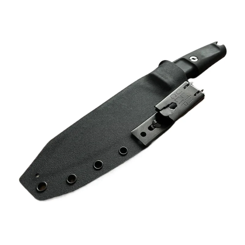 Aby przymocować nóż kempingowy ze stałym ostrzem i pochwą Shrapnel One do paska w tradycyjny sposób, poziomo lub pionowo, moi klienci zwykle wybierają Multi-Lok. Jeśli chcesz nosić nóż nieco niżej, polecam nylonowy pasek z uchwytem Kydex. Rzep idealnie nadaje się do noszenia noża przez pasek. Rzep to także praktyczne rozwiązanie umożliwiające przypięcie noża do paska plecaka. Oprócz pochwy z Kydexu mogę doczepić uchwyt ze stali ogniowej, opcjonalnie ze stali ogniowej (długość 80mm).
