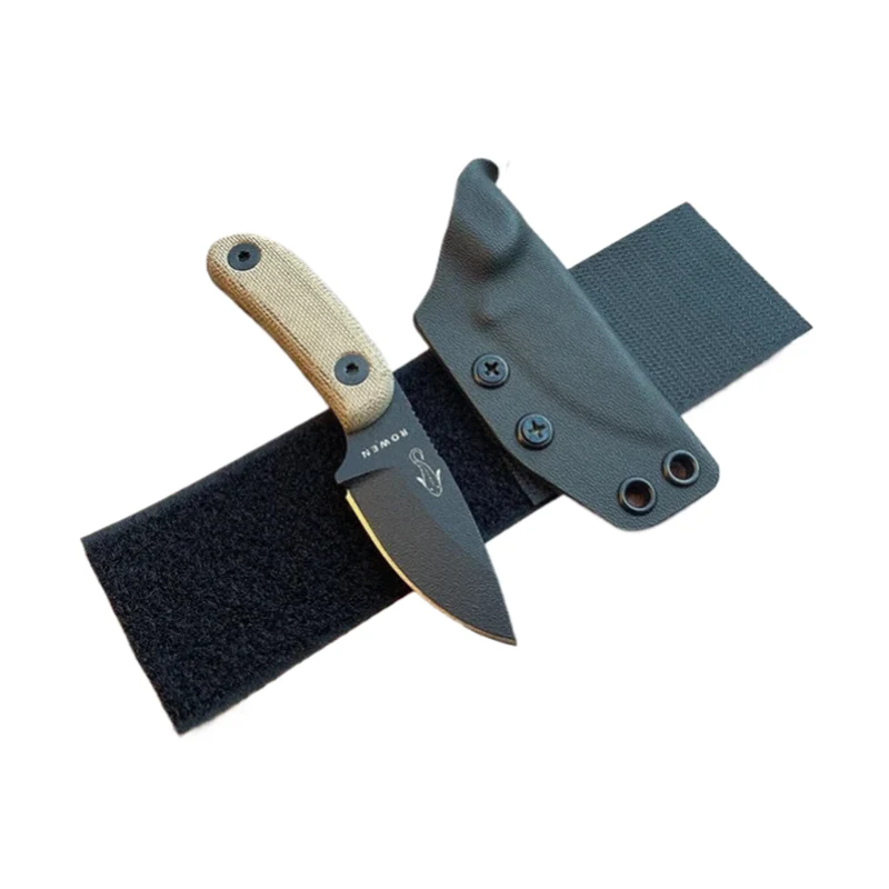 Pochwa na pasek noża jest idealna do noszenia noża na pasku. Rzep to także praktyczne rozwiązanie umożliwiające przypięcie noża do paska plecaka. Oprócz pochwy z Kydexu mogę doczepić uchwyt ze stali ogniowej, opcjonalnie ze stali ogniowej (długość 80mm). Kształt pochwy paska noża jest również idealny do noszenia małego noża na szyi jako noża na szyi. Pochwa Kydex dostępna jest w typowych, stonowanych kolorach takich jak: brąz, kojot brąz, piaskowo-oliwkowy i wiele innych.